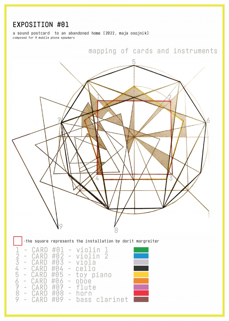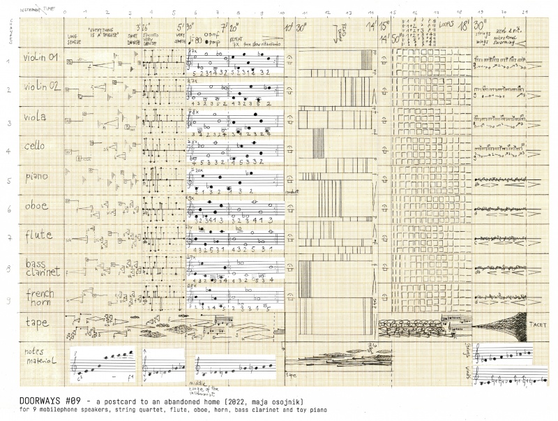 Am 2. Juli 2022 bildet Exposition #01 einen Klangteppich für die Solist*innen des Orchestra for the Earth entwickelte Komposition Doorways 9 / a sound postcard to an abandoned home, die an diesem Tag uraufgeführt wird. Das Ensemble ist aktiv in die Gestaltung der Klangkartografie eingebunden und lädt das Publikum zu einem mehrschichtigen auditiven Erlebnis des Raumes ein. Durch das improvisatorische Element wird Doorways 9 zu einer beweglichen Konstruktion, die sich in einer ständigen Metamorphose befindet und eine sorgfältige Auseinandersetzung mit Raum und Zeit verlangt.