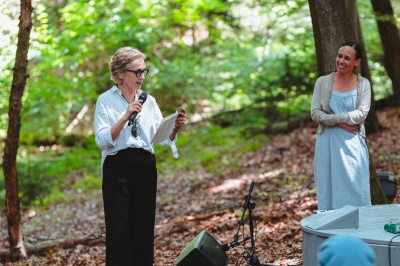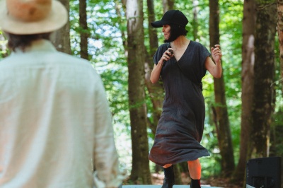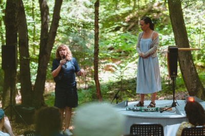 Den Wald im Zeichen des Staunens zum Klingen gebracht...und so sitzt man entspannt unter dem Blätterdach und lässt sich fallen in die vielstimmig kontemplative Poesie einer Klangreise zwischen Geigenklängen und Vogelgezwitscher.